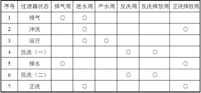 打開過濾器進(jìn)水閥、排氣閥,待水充滿設(shè)備時(shí)關(guān)閉排 氣閥,打開出水閥。當(dāng)運(yùn)行至進(jìn)出口壓差≥0.05~0.07Mpa 時(shí),運(yùn)行周期結(jié)束,設(shè)備需反洗。